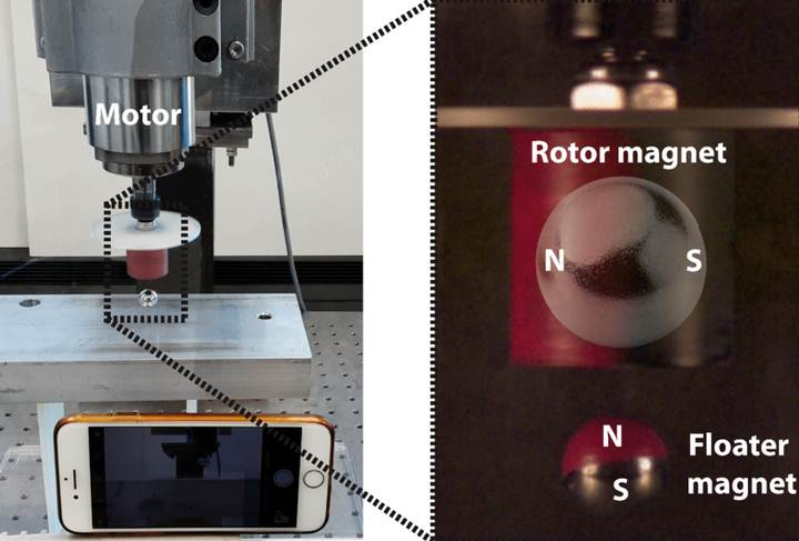 Результаты оказались показательными. Эксперименты показали, что когда поплавковый магнит начал вращаться, он синхронизировался по частоте с магнитом ротора, приняв почти вертикальную ориентацию. Полярные оси двух магнитов, почти перпендикулярные друг другу, образовывали конфигурацию, которая обычно была бы нестабильной. Тем не менее, в этой конфигурации вращающееся магнитное поле ротора оказывало крутящий момент на поплавок, фиксируя его в стабильном левитирующем положении.