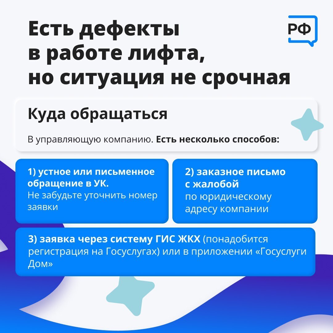 Застряли в лифте. Что будем делать. Кратко и подробно объясняем.рф подготовил нам инструкцию в медиа-карточках, в т.ч. что делать если лифт постоянно ломается или не работает в связи с отсутствием ремонта дефекта.