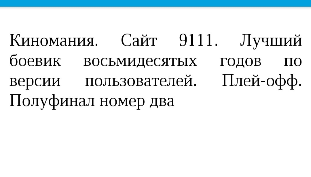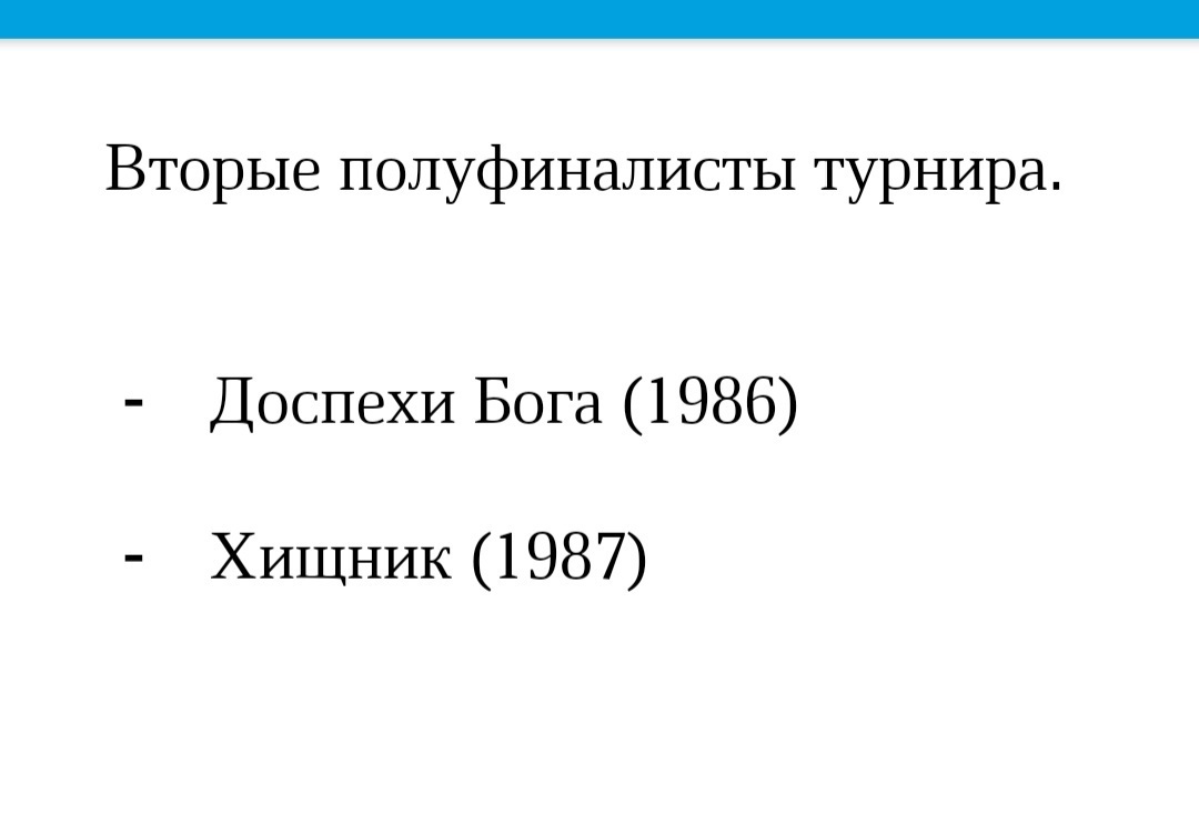 Киномания. Сайт 9111. Лучший боевик восьмидесятых годов по версии пользователей. Плей-офф. Полуфинал номер два