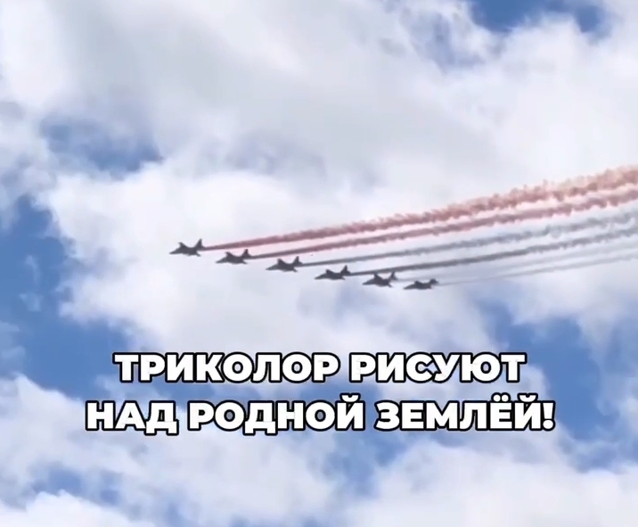 Воздушная часть парада Победы в небе над городом.