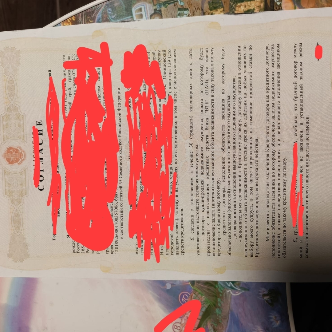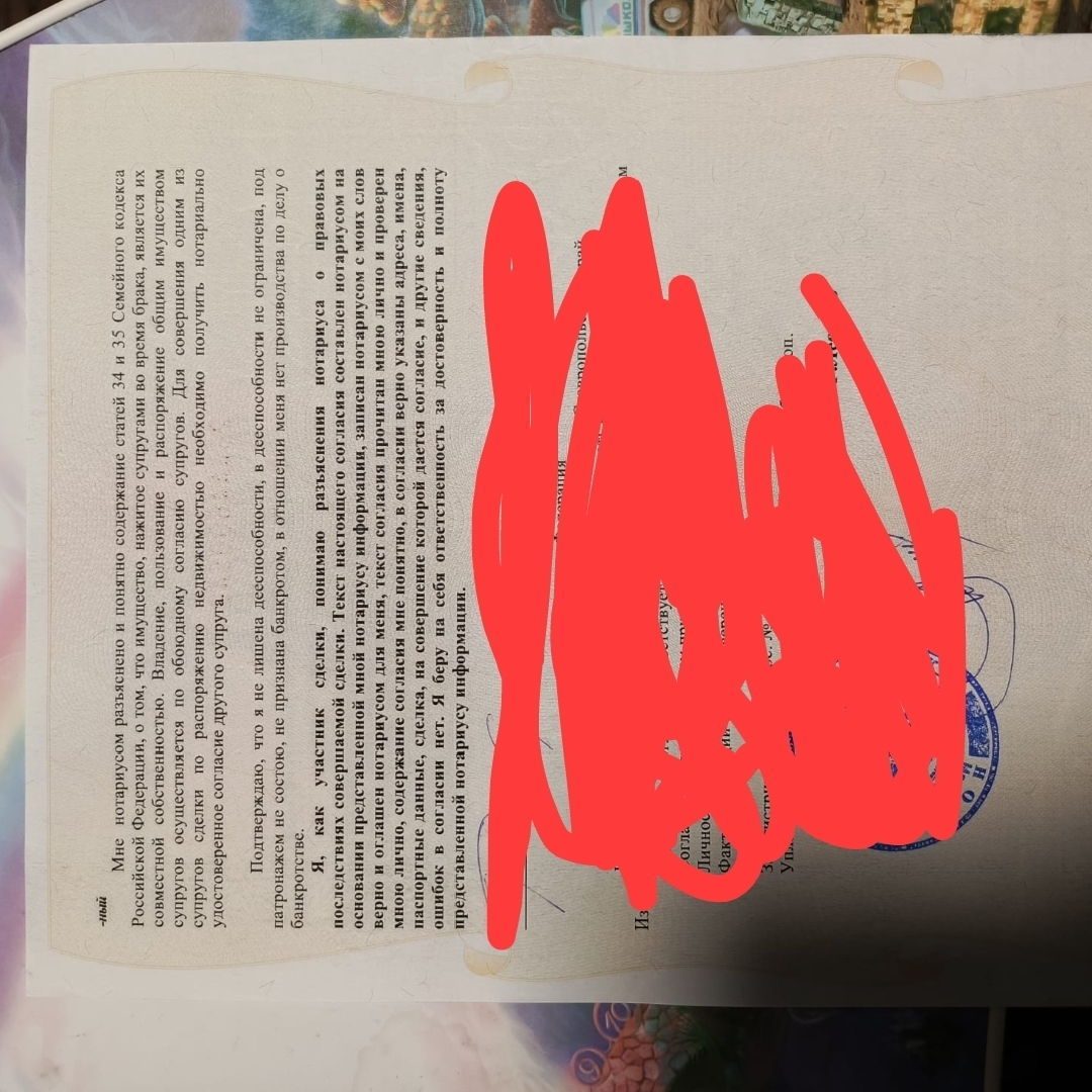 В 2022 году взял ипотеку, находился в браке, есть ребенок. Деньги на первоначальный взнос давали половина родители жены а половина мои родители. Мои родители дали деньги наличными, ее родители перевели мне на карту без указания названия платежа. Прошло два года мы развелись, жена подала на раздел в том числе ипотечной квартиры и вдруг появилась дарственная расписка о том что родители супруги подарили ей деньги на покупку квартиры, которую мы купили в ипотеку, соответственно раздел имущества уже ни 50/50 а совсем иной. В пользу супруги присудили в суде первой инстанции 2/3 мне 1/3. Подал на апелляцию, апелляционный суд отменил решение районного суда и определил 1/2 часть каждому из нас. Сейчас бывшая супруга подает в кассацию чтобы опять получить 2/3. И вот недавно капаясь в документах нашел согласие наториальное, которое всегда должна давать супруга при покупке ипотечного имущества в нем есть обзац который гласит:-Я Иванова Наталья Петровна сообщаю что брачный договор между мной и Ивановым Игорем Сергеевичем не заключен, и УСТАНОВЛЕННЫЙ ЗАКОНОМ РЕЖИМ СОВМЕСТНОЙ СОБСТВЕННОСТИ ВСЕГО НАШЕГО ИМУЩЕСТВА НЕ ИЗМЕНЕН. Вопрос первый что значат эти слова? Вопрос второй какие шансы что решение останется без изменений, то есть имущество будет разделено по 1/2? Согласие прикрепляю к сообщению