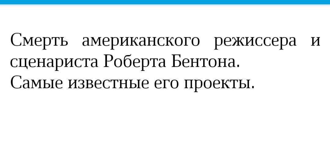 Американский сценарист и режиссёр скончался на 93-м году жизни в своём доме на Манхэттене. Как стало известно Роберт Бентон в последнее время работал над своими мемуарами.