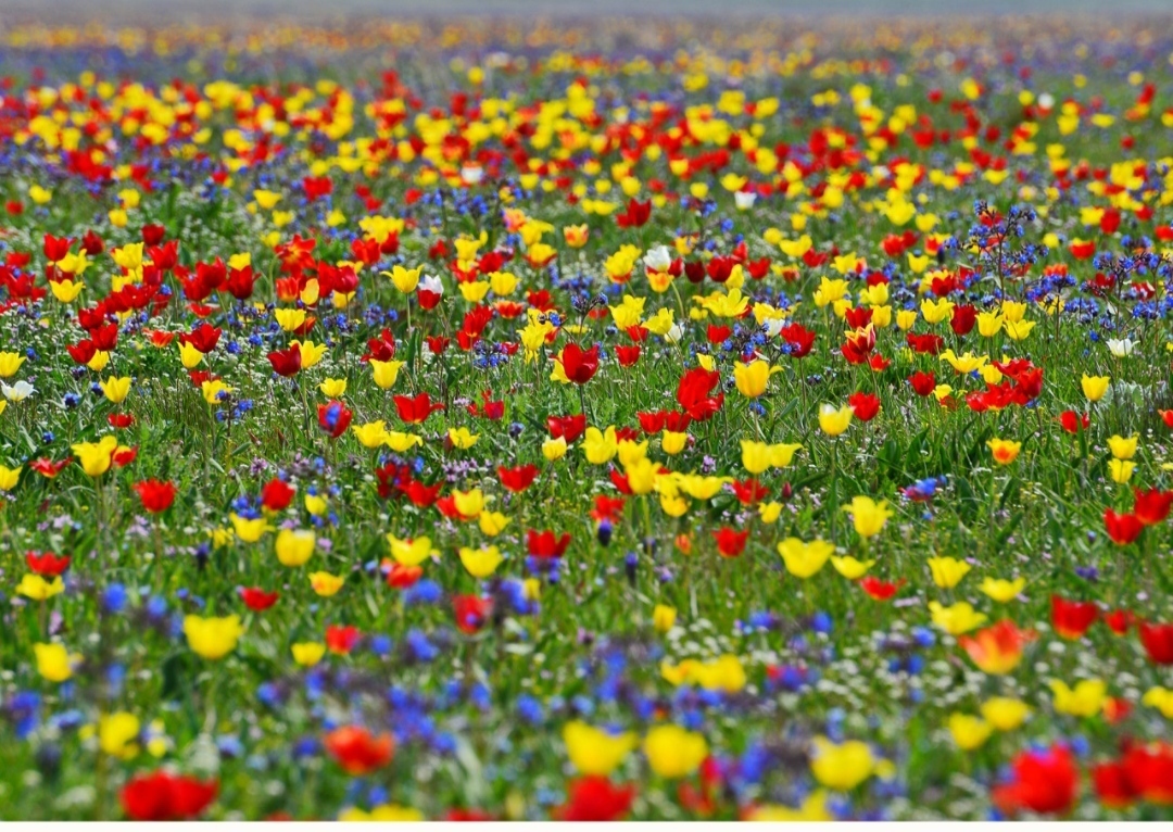 В Казахстане так цвела Бет-Пак-Дала, каких только цветоы не было! Красные, желтые, фиолетовые, черные, розовые и разные в крапинку! Нас автобусами вывозили из школы тюльпаны собирать. Только предупреждали, чтобы не нюхали, в бутоны часто скорпионы заползали, в основном мелкие песочно-бежевого цвета. А однажды из одного тюльпана уже на школьном дворе выполз чёрный скорпион 😵 . Испугались, но все сбежались посмотреть 😆
