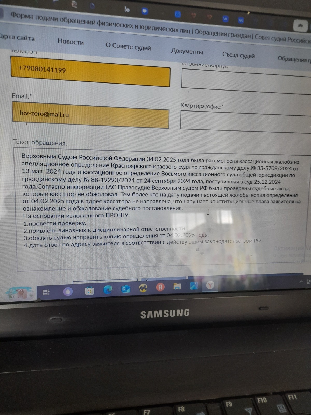 3.законным считается вынесение определения после 23.04.2025 года - даты поступления моего обращения в Верховный Суд РФ от 04.02.2025 года на НУЖНЫЕ судебные акты?