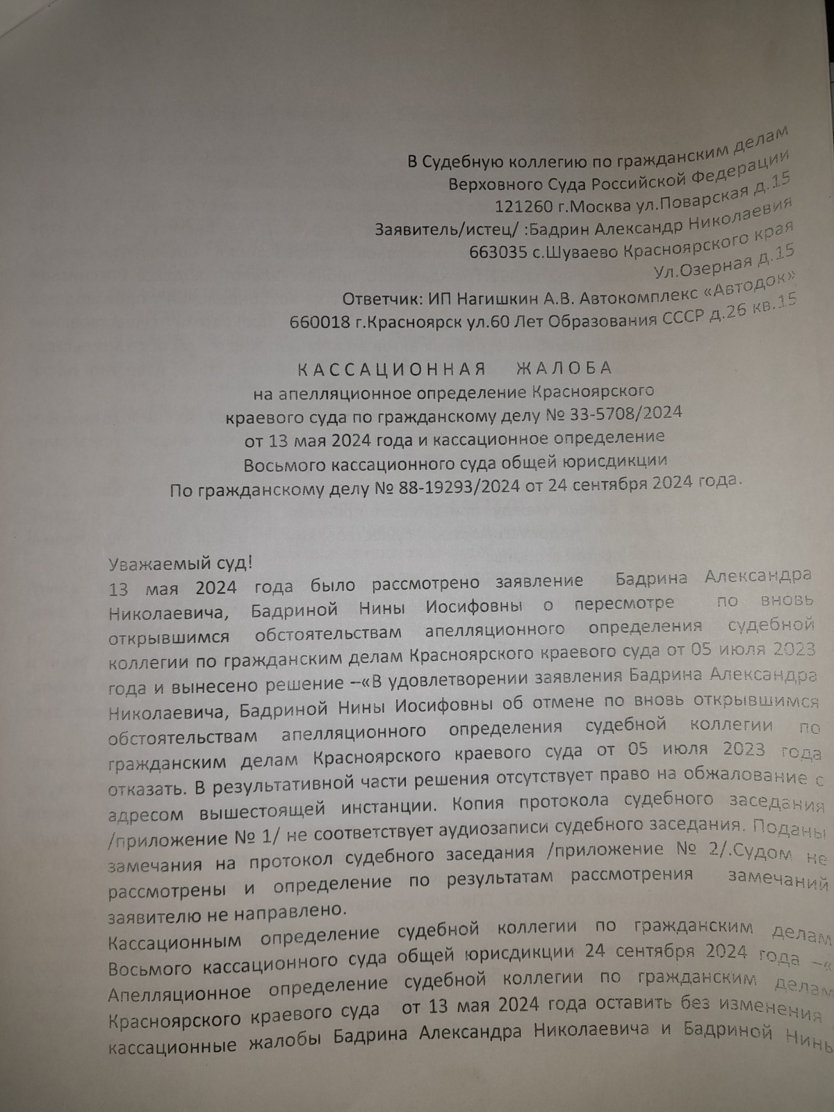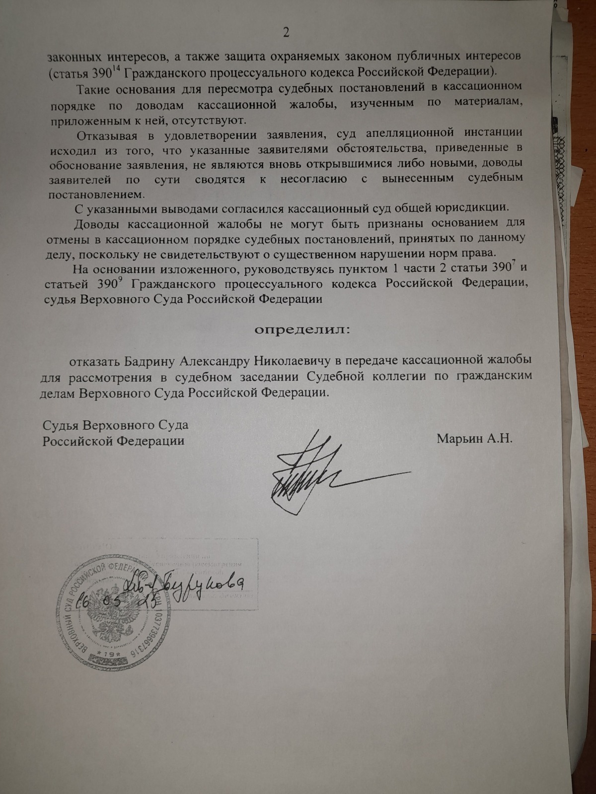 Самое интересно на просторах интернета особенно в Контакте постоянно публикуется информация , как Верховный суд восстанавливает справедливость.Предлагаю рассмотреть конкретный случай.Подана кассационная жалоба