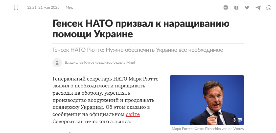 Я уж не знаю, действительно ли Рютте считает разговор Путина и Трампа позитивным, но несколько минут назад в СМИ появилось вот это: