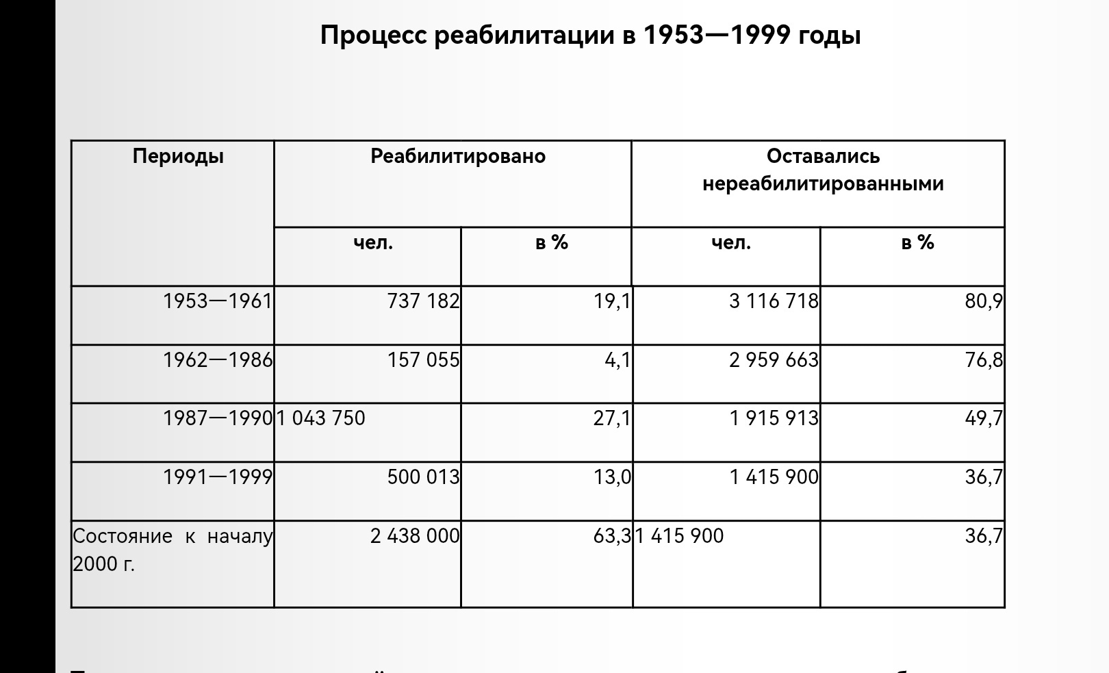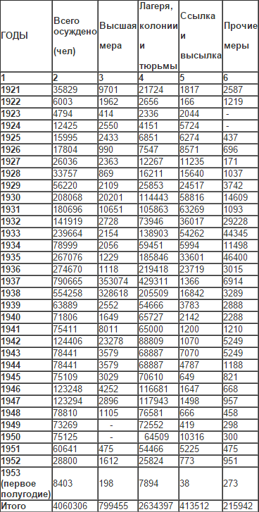 Уже всё проанализировано на основании предоставленных материалов -- всё верно: миллионы репрессированных.