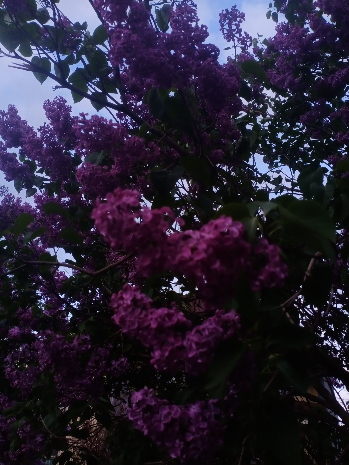 Вот такой огромный куст, я бы даже сказала дерево, сирени растет около моего дома. Каждую весну я любуюсь красотой и очень расстраиваюсь, когда всё это великолепие начинает увядать и опадать.
