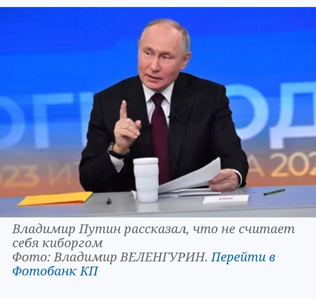 Сказано это было в процессе обсуждения необычной темы предложения руки и сердца через сайт Госуслуг. Путин провёл аналогию с киборгами.