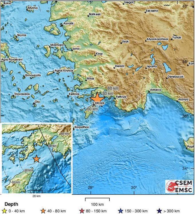 Сегодня в Турции в районе Мармарис произошло землетрясение силой 5.8 балла, очаг находился на глубине 67 километров, трясти начало в районе 2:15 по Москве.