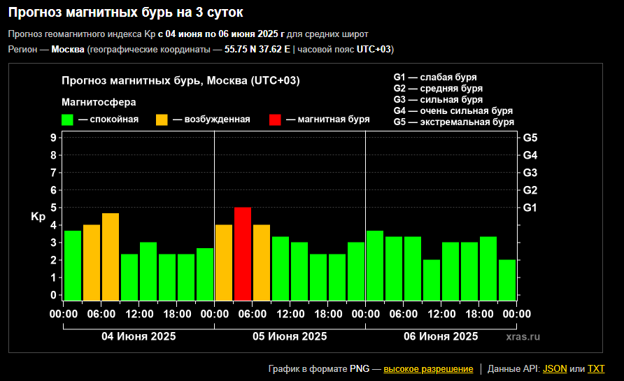 Магнитная буря 4 июня 2025: Возбужденная магнитосфера и влияние на здоровье