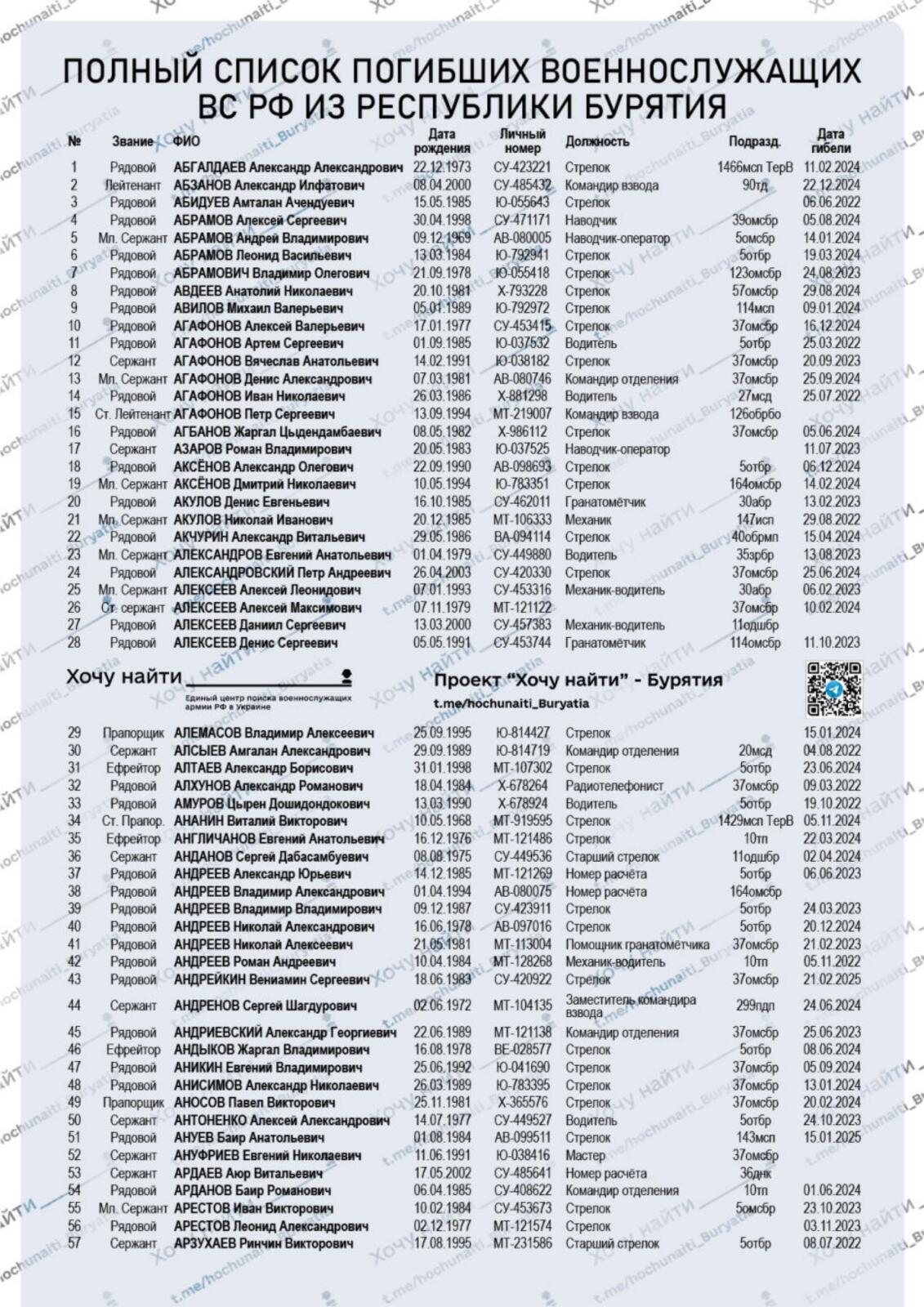 💥⚡Список погибших из Республики Бурятия по состоянию на начало 2025 года. Подтверждено как минимум 2030 погибших