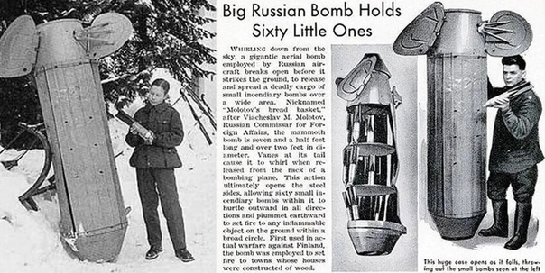 Первая в мире кассетная бомба применялась в СССР ещё в финскую войны- "хлебница Молотова", она здорово бесила финнов но у нас её не любили.