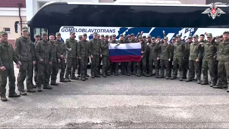 Минобороны России опубликовало первые кадры возвращения наших солдат. На кадрах видны не менее 20 мужчин. Все они с радостью кричали: "Ура, мы дома!", а позже появилось еще одно видео, на котором видно более 30 человек.