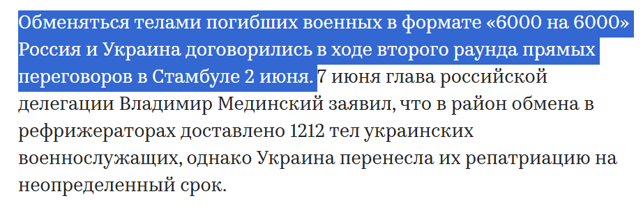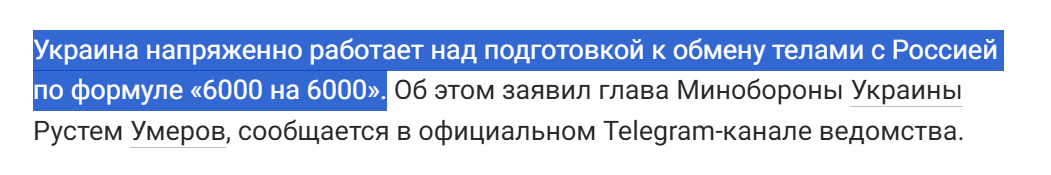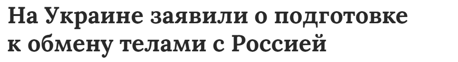 И он будет не прав. Потому, что в случае с Украиной ни о каком обмене телами или о формуле обмена речи быть не может. Потому, что ВСУ тела своих военных не подбирают, а о телах наших погибших и, тем более об их сохранности или идентификации и речи быть не может.