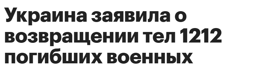 11 июня поступила информация о том, что Украина, приняла, таки, тела 1212 своих военнослужащих, а в ответ предала всего 27 тел наших солдат.
