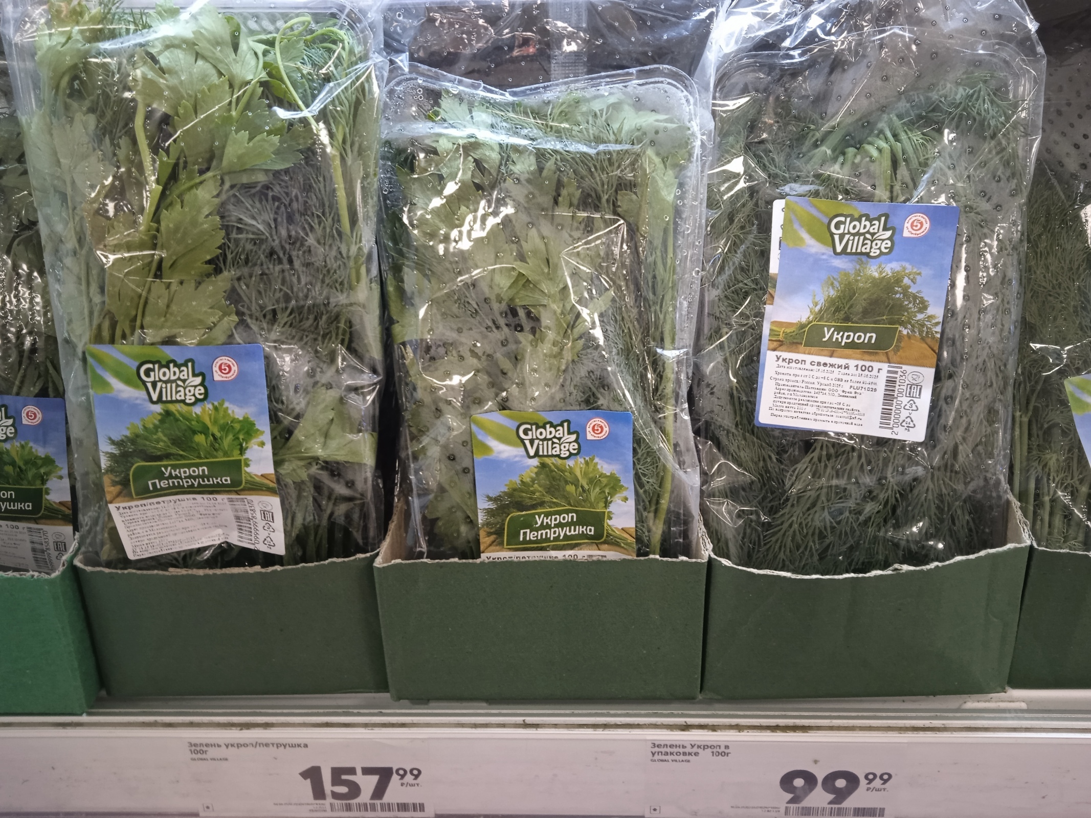 Самое смешное, что этот глобал виллаж - это пятерочкин стм, а стоит просто космос. Обычно стм товары чуть ниже, чем такие, но других производителей. А еще смешно то, что когда хочешь купить этот несчастный пучок зелени, то он на последнем издыхании и вот буквально ты видишь, как этот пучок богу душу отдает. Может за это деньги и берут?