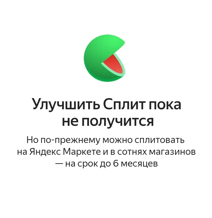 Было написано «У вас самозапрет на кредиты, поэтому улучшить Сплит пока не получится»?