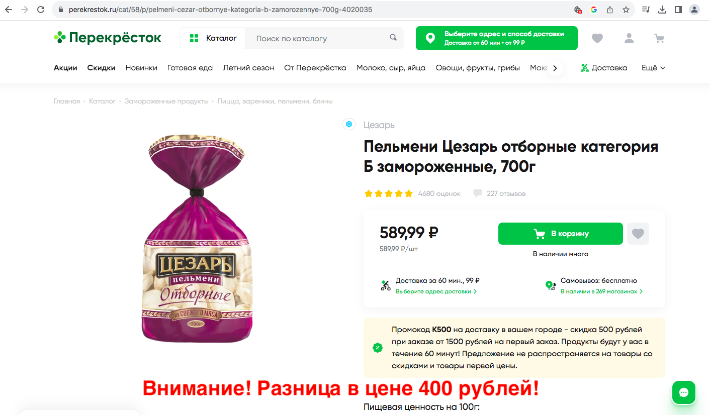 Как нас дурят с ценами: покупаю пельмени «Цезарь» в три раза дешевле, чем в «Перекрёстке». Куда смотрят ФАС и власти?