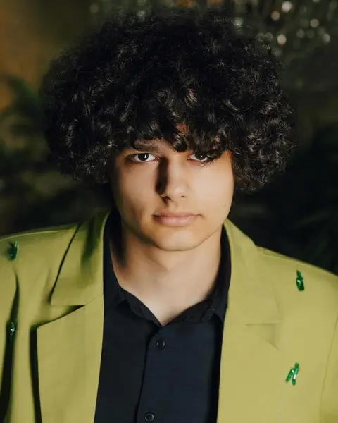 Глафира обнародовала снимки сына. Кудрявый молодой человек предстал в необычном образе: он надел классическим костюм насыщенного зеленого оттенка. На одном из фото юноша предстал сидящем на полу в костюме в оттенках серого.