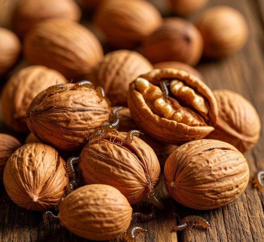 Черви в орехах.