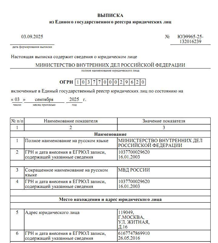 Адрес «г. Москва, ул. Житная, д. 16» — это официальный адрес МВД РФ, который используется для регистрации и официальной корреспонденции.