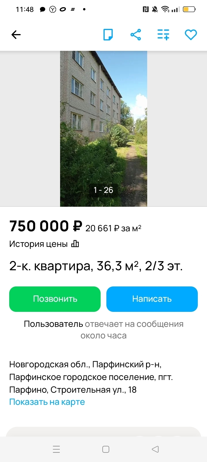 Ну не знаю, в Новгородской области за маткапитал можно купить жильё и вполне приличное. Могу скринов с Авито прислать.