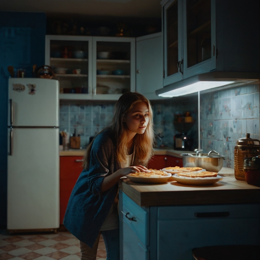 Вот это поворот! Представляешь, мой подруга всегда была тощей, ела мало, максимум чашку кофе вместо куска торта. А мы начали жить вместе, и вот однажды ночью я пошёл в туалет (ну, как обычно), а на кухне свет горит. Ну думаю, что-то случилось, заглядываю – и вижу картину, от которой до сих пор ржу: моя девушка одной рукой жрёт блины, а другой шмякает кусочки по полу! Оказалось, она так ловко спланировала "преступление", чтобы свалить пропажу на кота. Вот это креативность! 😂