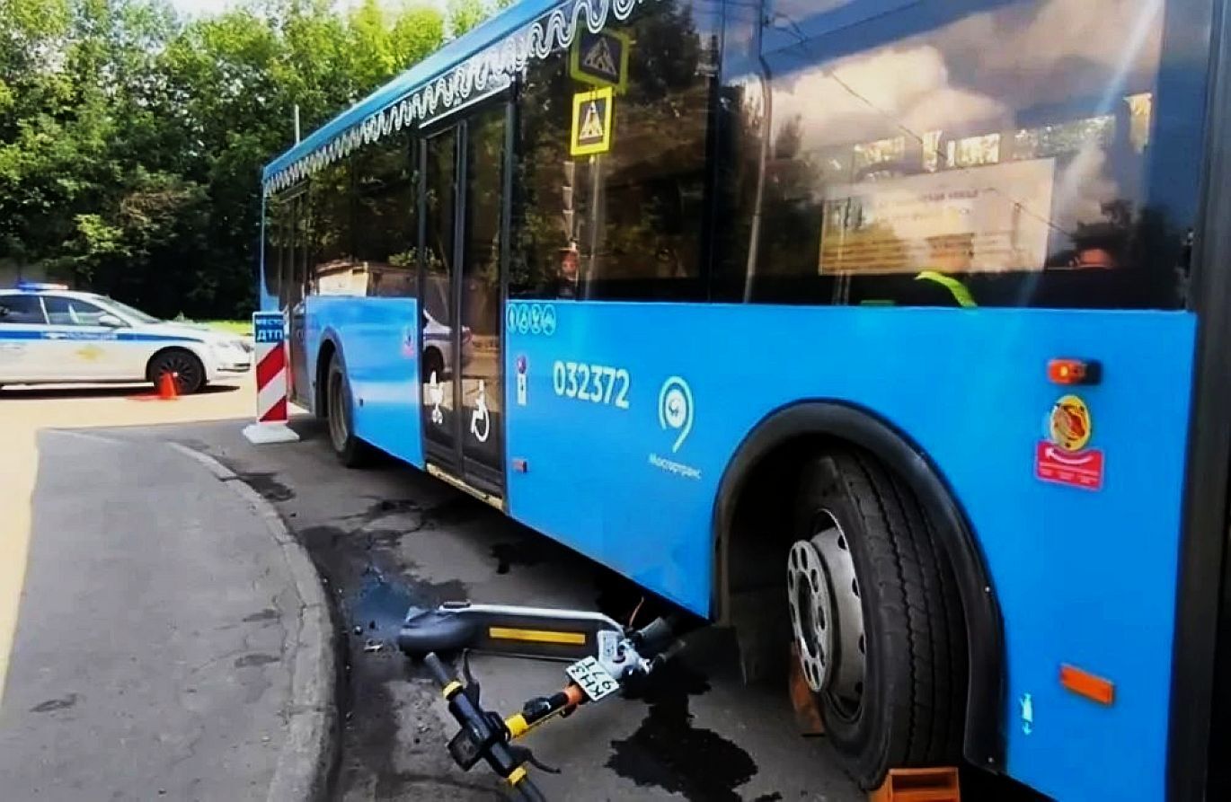 - На улице Малыгина в Москве, отчаянный ездок на самокате, решил пободаться с автобусом, мгновенно закрыв все свои жизненные проблемы и создав огромные сложности для водителя общественного транспорта.