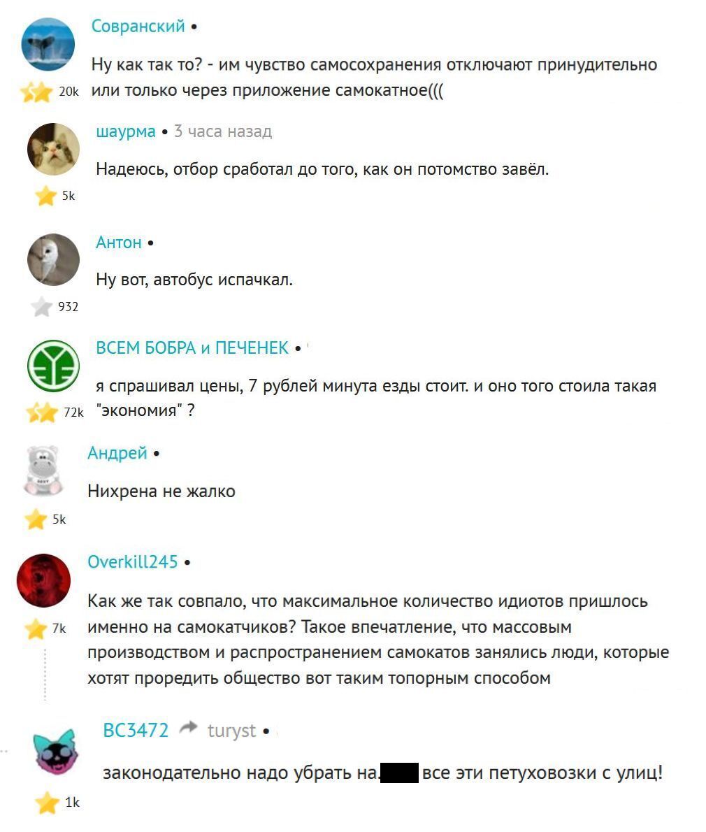 Я сам очень не люблю самокатчиков, но этот погибший парень был чьим-то сыном, братом, а может даже отцом. Человек совершил свою главную ошибку в жизни и теперь уже ничего не исправить.