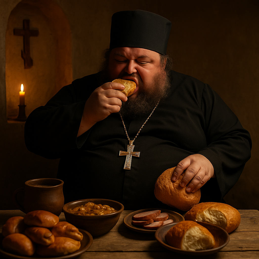 Посты не соблюдал: в Великий пост варил хаш, громко и с мясом, чтобы соседский дьякон завидовал. На Пасху ел суши. На Троицу хинкали. Объяснял это тем, что Господь любит разнообразие. Утверждал, что если бы Христос жил сейчас, то точно был бы за фьюжн-кухню и биткойн.