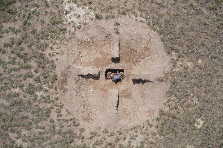 Сооружение было тщательно разделено на три секции: одна для тела и его оружия, другая для керамических сосудов и третья, пустая, что указывает на возможную веру в загробную жизнь.