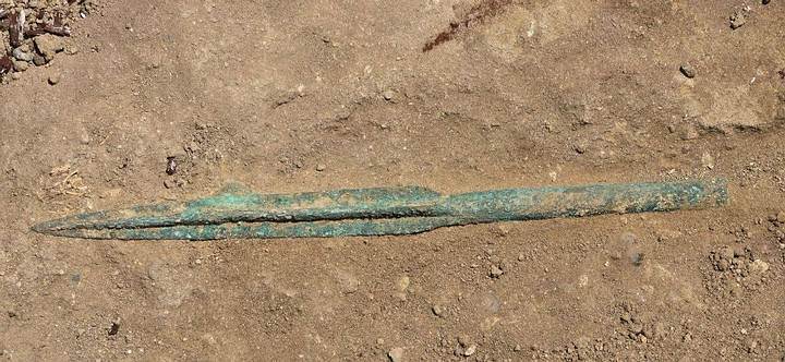 Помимо копья, археологи обнаружили в гробнице различные артефакты, включая бронзовые украшения, стеклянные бусины, обсидиановое оружие и двенадцать богато украшенных керамических кувшинов.