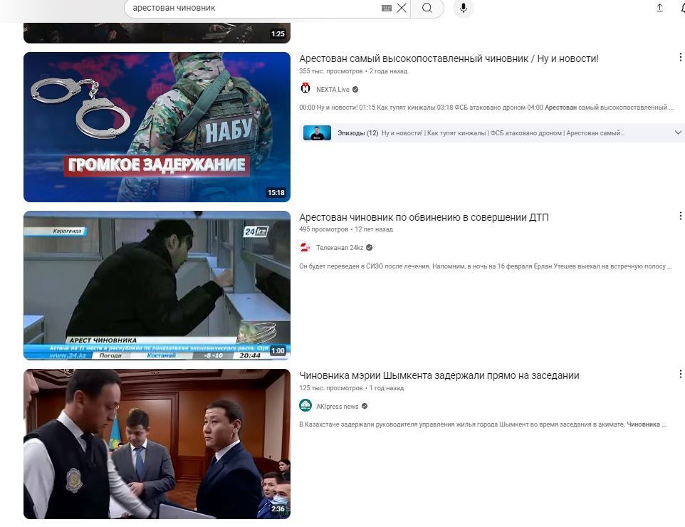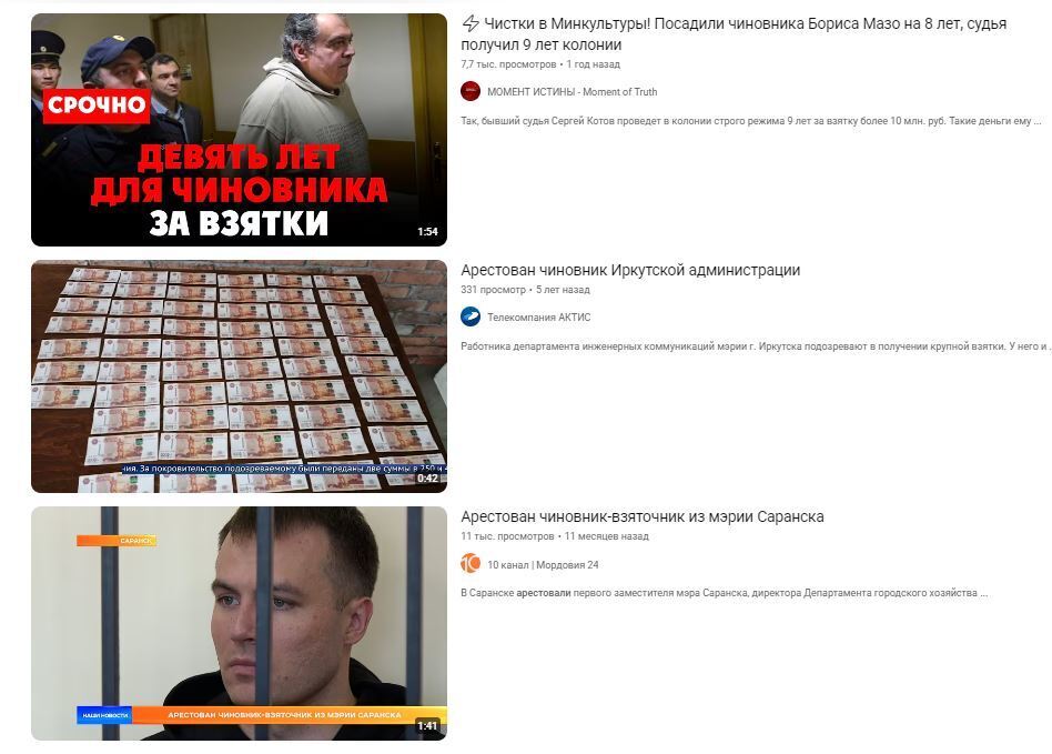На ютубе ввел запрос "арестован чиновник". Вот что выдало. И такое слайдшоу с ютуба можно продолжить до бесконечности.
