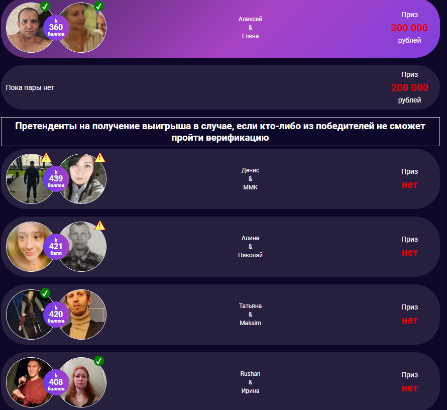А может она с напарником зарегистрируется завтра или послезавтра, сразу верифицируют анкеты и сразу пару образуют с высоким К. И фсё! В дамках! Останется только в Питер съездить за денежкой... 🤣 🤣 🤣