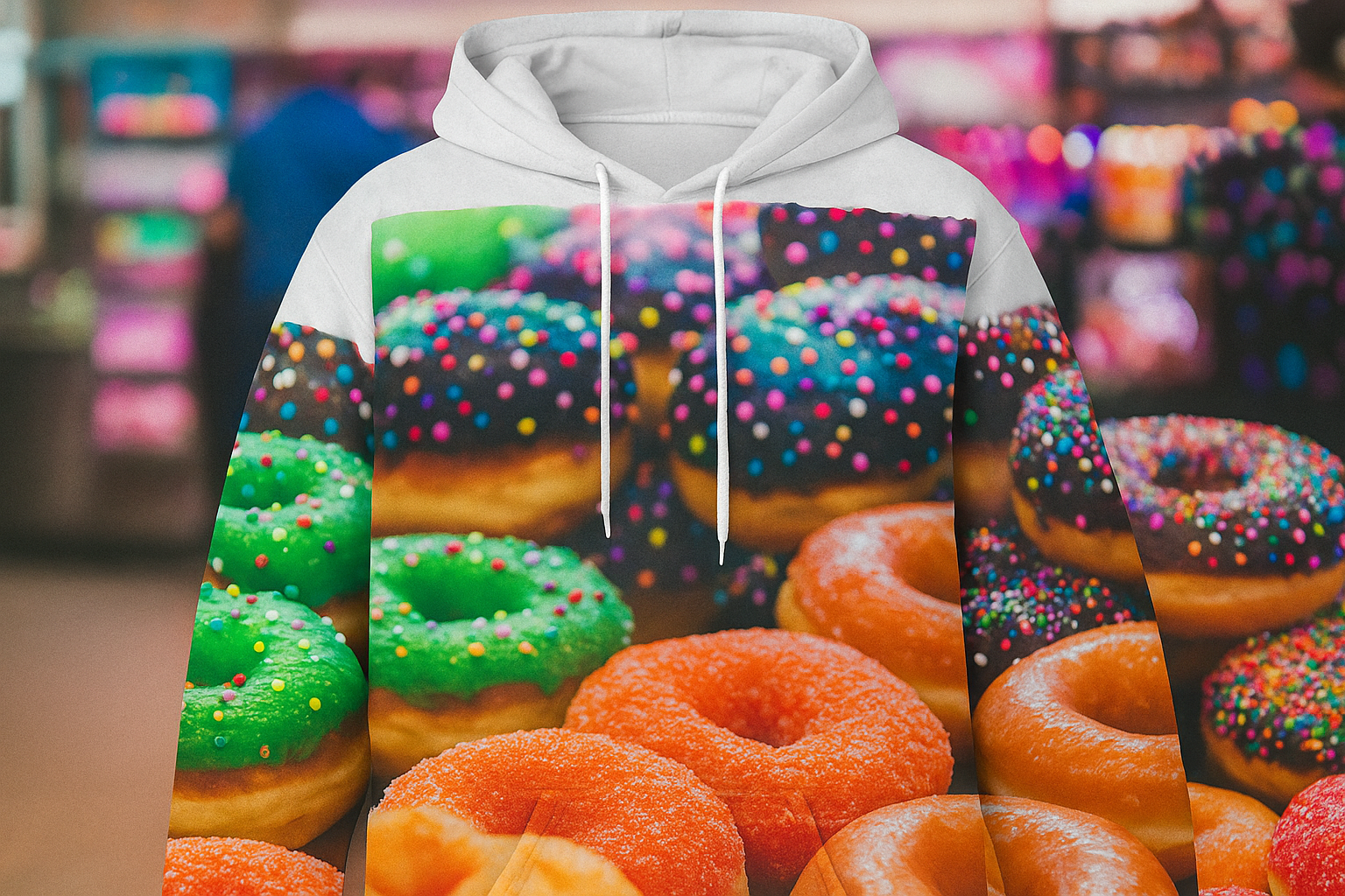 Прослеживается логическая цепочка: свитер для чего? для того, чтобы камеры ИИ не распознали вас, когда вы идете в кондитерскую за пончиками. А где пончики? А вот они, на фото.