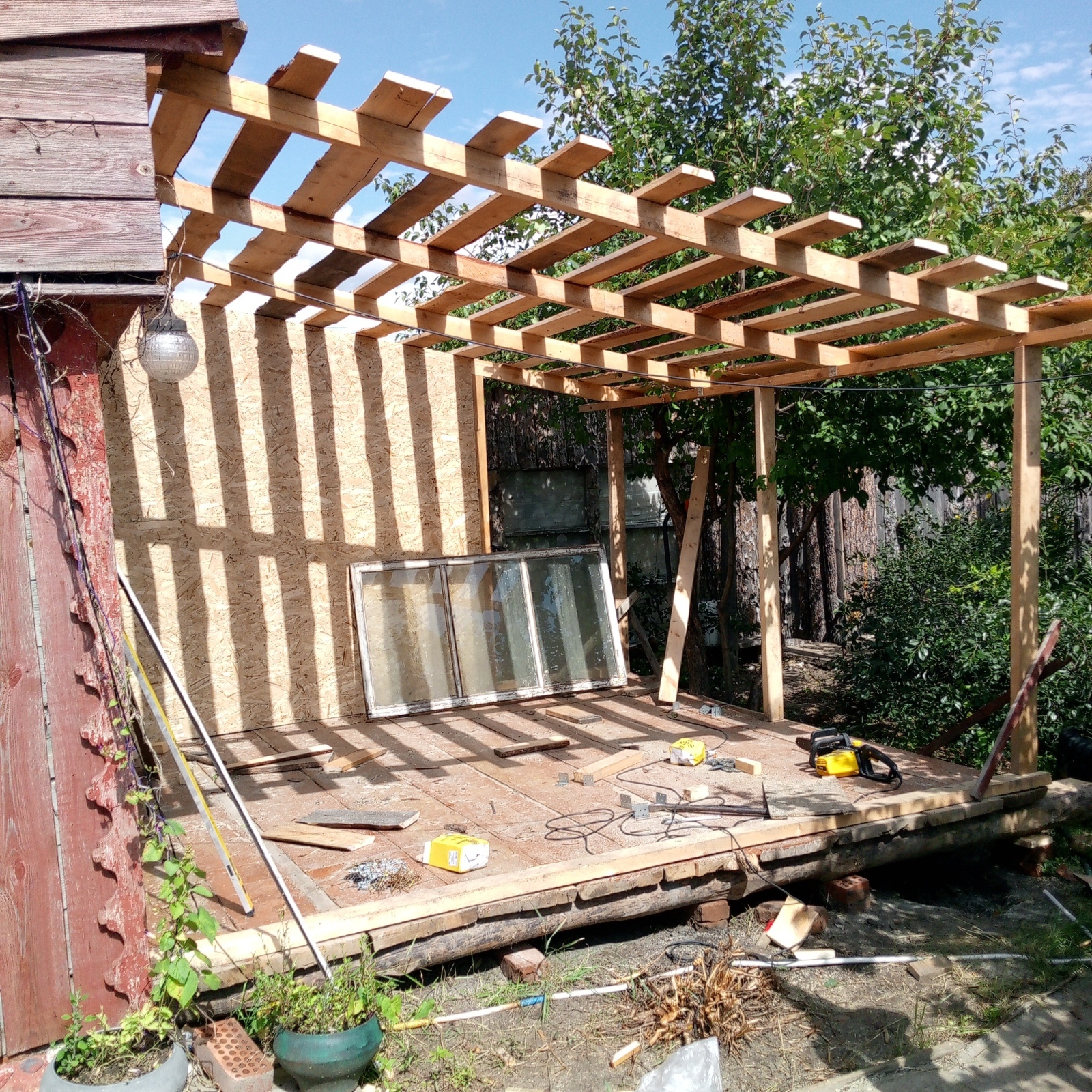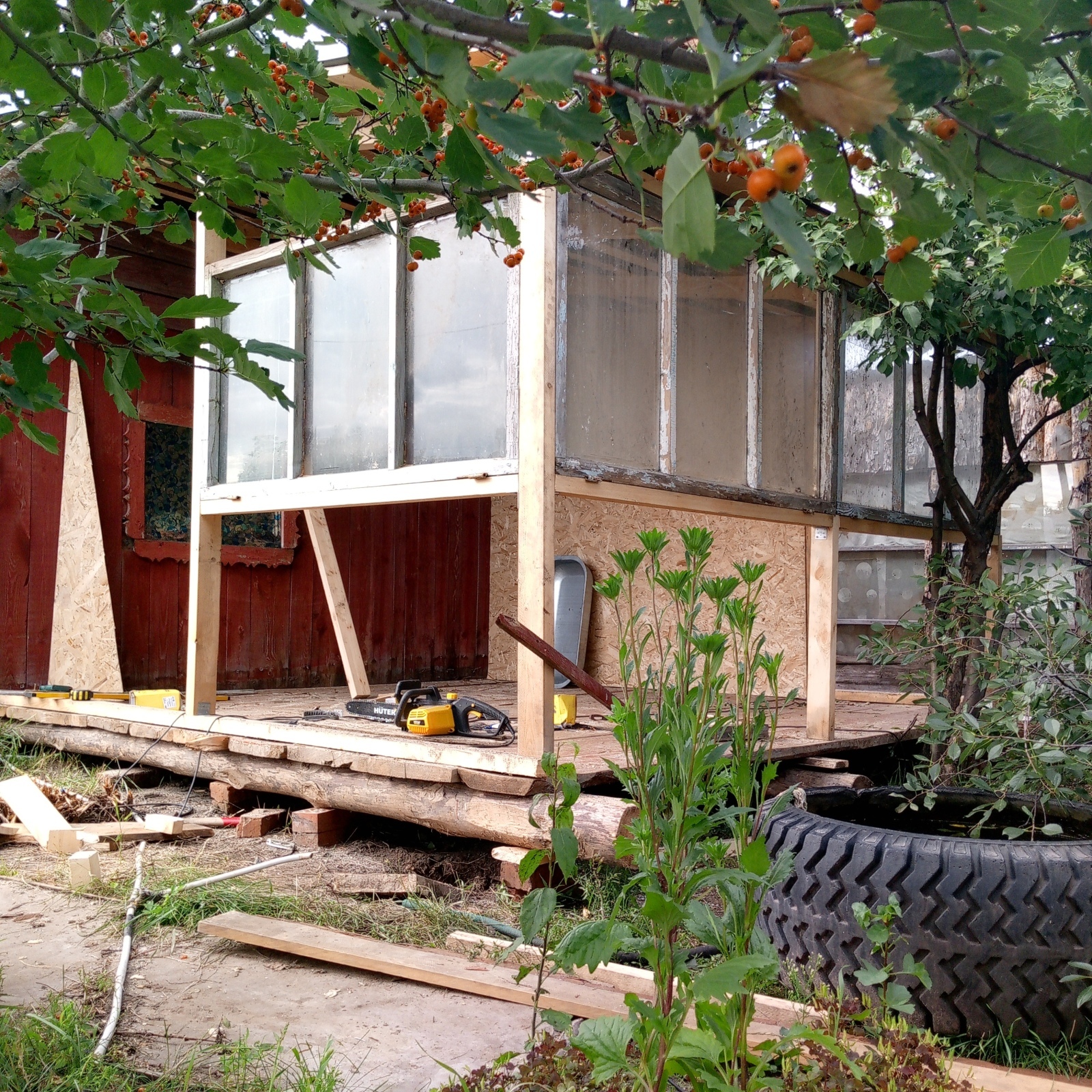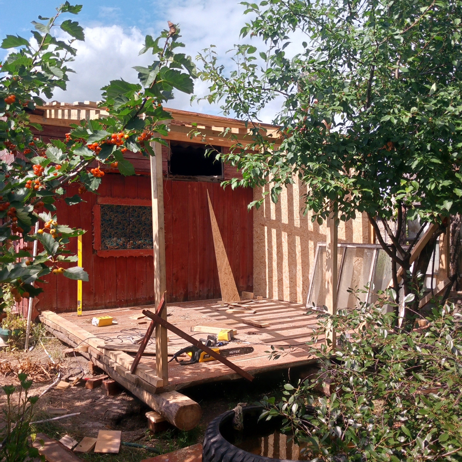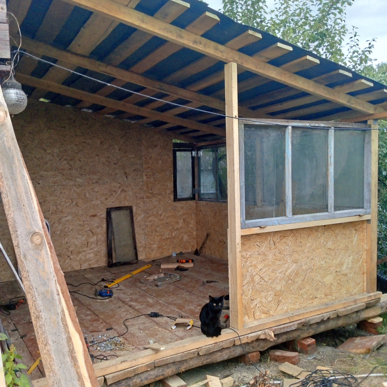 Далее в ход пошли плиты ОСП , измеряем, пилим, прикручиваем... измеряем, пилим, прикручиваем... Уже и солнышко садится, а мы измеряем, пилим, прикручиваем.