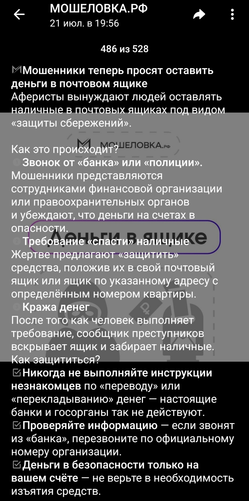 Мошенники: наличные в почтовый ящик. Кто-то читал и слышал новость об этом, кто-то нет. Но напоминать о схемах нужно время от времени.