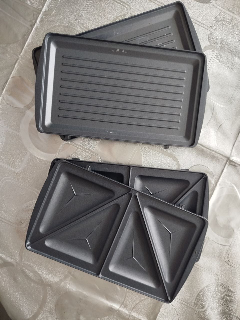 Здесь 3 варианта съемных панелей: для гриля, бутербродов и Венских вафель! Это то, что мне было нужно, потому что муж любит горячие бутерброды, овощи на гриле и сладкую выпечку!