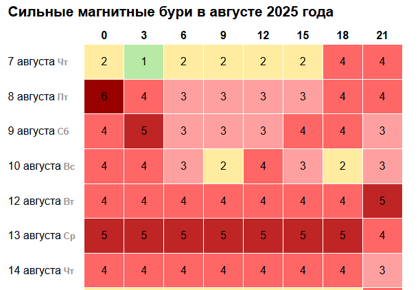 Возможные последствия магнитных бурь 11-13 августа 2025 года