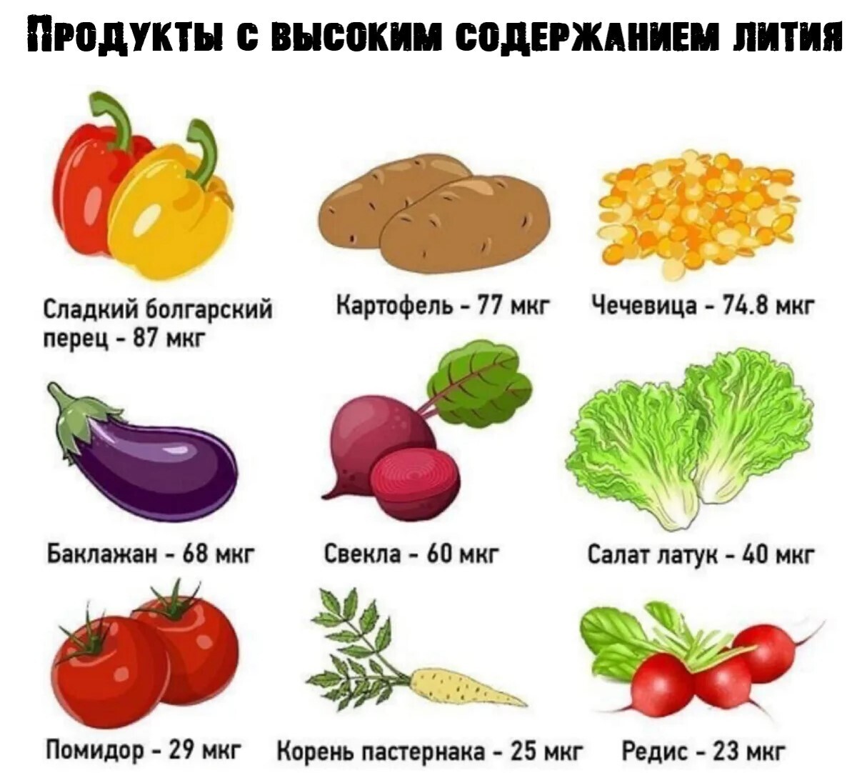 Прочитала в интернете, что основным источником лития является минеральная вода — та, которая была добыта из подземных или высокогорных источников. Литий также содержится в мясе птицы, злаках, грибах, куриных яйцах, морской соли.