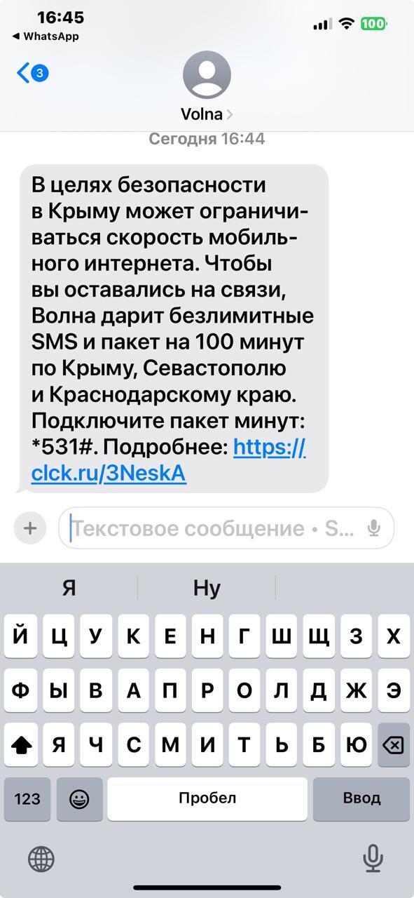 Операторы сотовой связи Крыма, такие как "Волна" пообещали предоставить своим абонентам бесплатные СМС и пакеты дополнительных минут для звонков на номера Р. Крым, г. Севастополь и Краснодарского края.