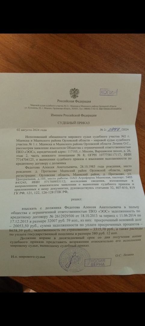Отмена судебного приказа