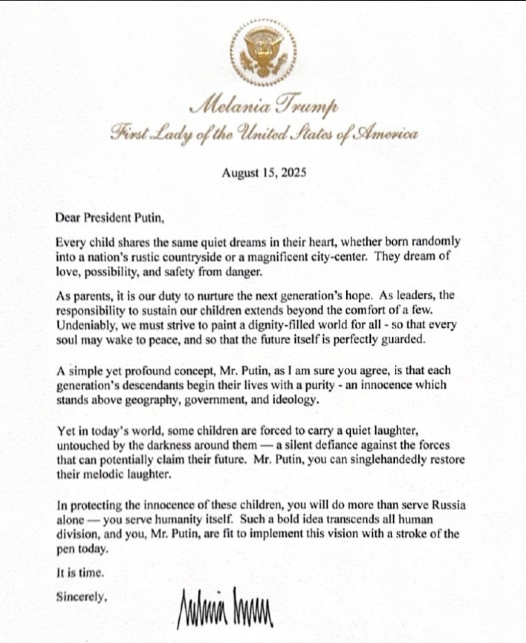 По традиции жены глав государств обращаются друг к другу. Но тут проблемка.