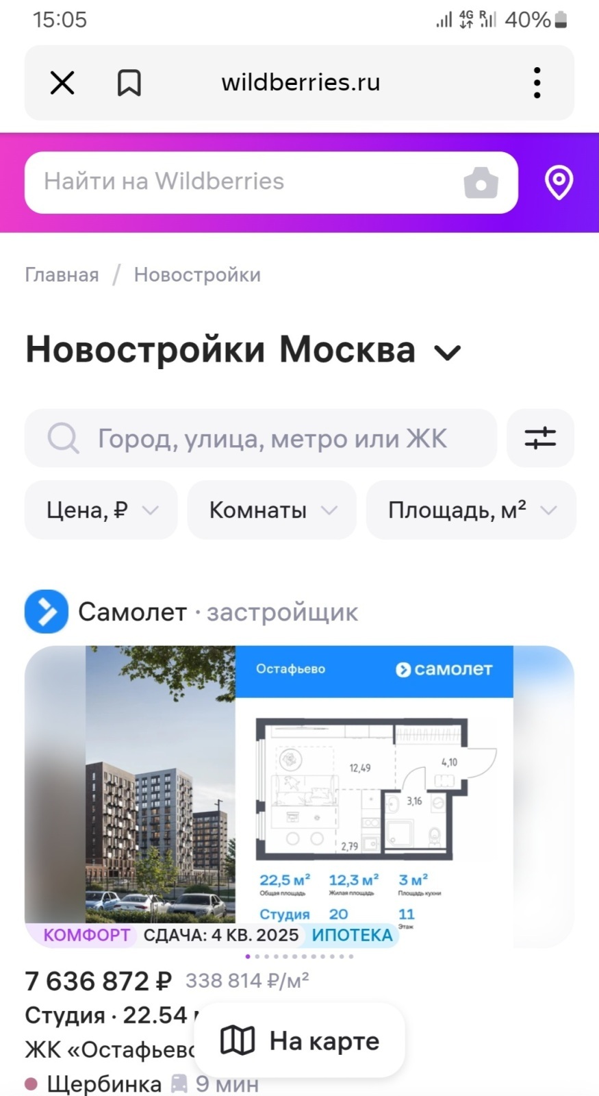 Прошли те времена, когда на Wildberries, можно было заказать, понравившуюся вещь или бытовую технику. Wildberries пошёл дальше всех и запустили продажу квартир в новостройках. Такими темпами, Wildberries будет похож на сайт авито. Где можно, купить, продать и найти работу.