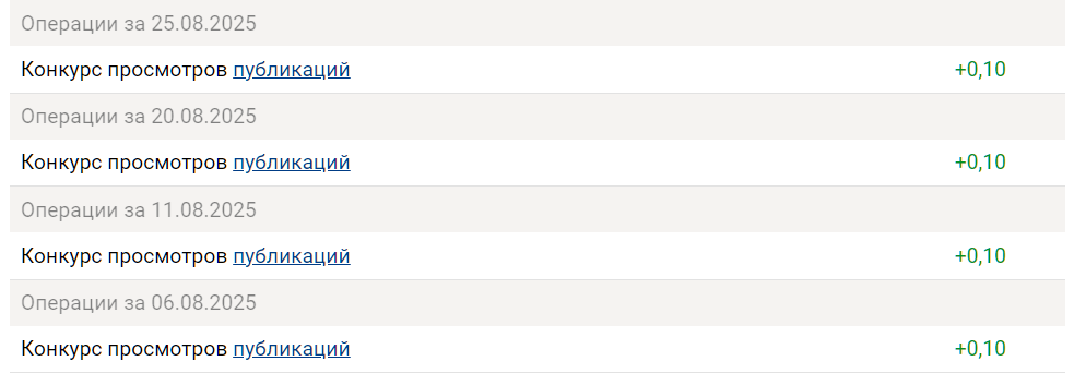 Я пишу раз в пятилетку и по настроению (в частности, за текущий году меня всего 9 публикаций). Но какие-то копейки падают регулярно - я на них даже не обращаю внимания. Сейчас вот из-за вашей статьи посмотрела. Скрин привожу.