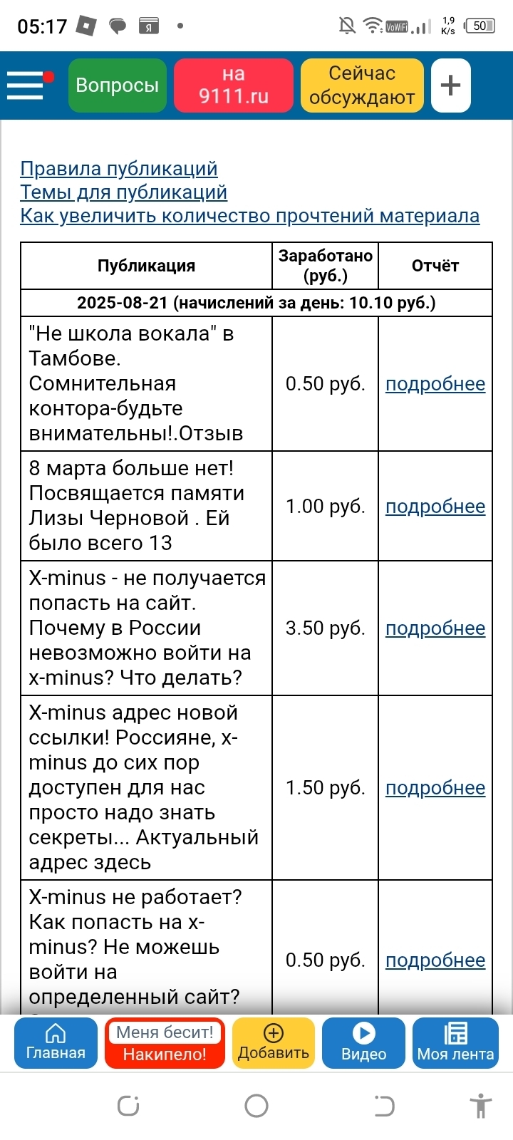 На данном скриншоте можно видеть какие публикации приносят доход и сколько. К слову говоря, их я писала очень давно.