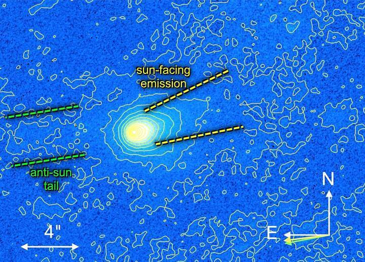 Анализ «Хаббла» также показал, что пылевое облако вокруг него очень слабое (10^{-4} граммов на квадратный сантиметр), а это означает, что наблюдаемый нами свет в основном является отражением солнечного света от твёрдой поверхности ядра.