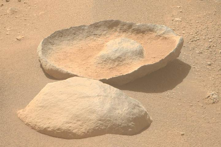 «Одна из гипотез относительно его формы состоит в том, что она обусловлена процессом, известным как поверхностное упрочнение. Это происходит, когда внешний слой обнаженной поверхности породы затвердевает либо из-за химического выветривания и относительного размягчения внутренней части, либо из-за затвердевания внешнего слоя из-за образования корки. Это может вызвать избирательную эрозию внутренней части породы, оставляя после себя интересные полые формы»,- объясняет космическое агентство в заявлении.