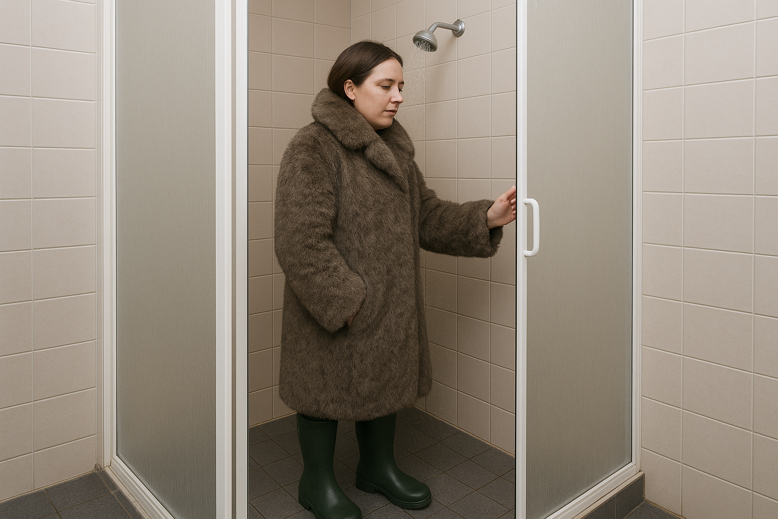 Если всё-таки вы решитесь принять душ в бане, бассейне, при тренажёрном зале, то мыться лучше в шубе или пальто! Никто не догадается, что это вы. Да, и переодеваться строго в комнате без окон.